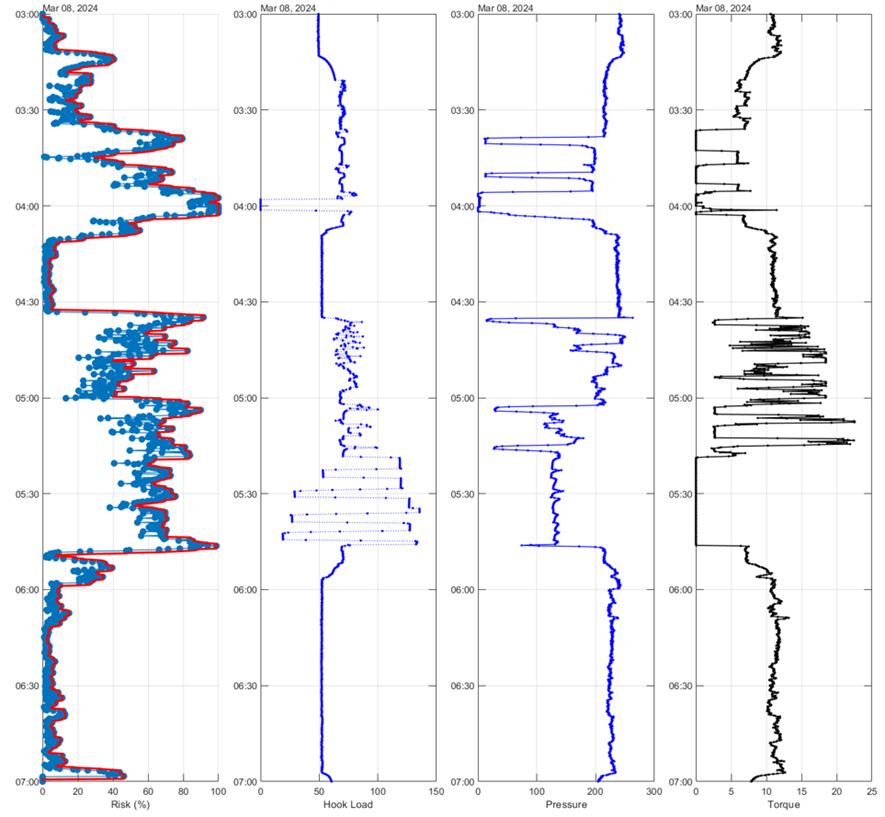 drillstring sticking, stuck pipe incidents, Torque & Drag modeling, predictive analytics, LSTM autoencoder, WITSML telemetry, deviation metrics, rate-of-change analysis, risk index.