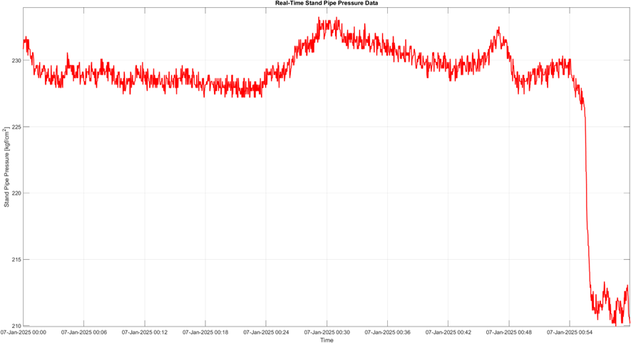 Для проверки работы алгоритма использовались реальные данные, полученные со скважины XXXXXX за период с 07.01.2025 00:00 до 07.01.2025 01:00.