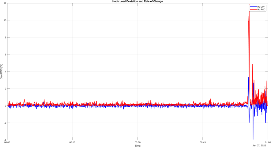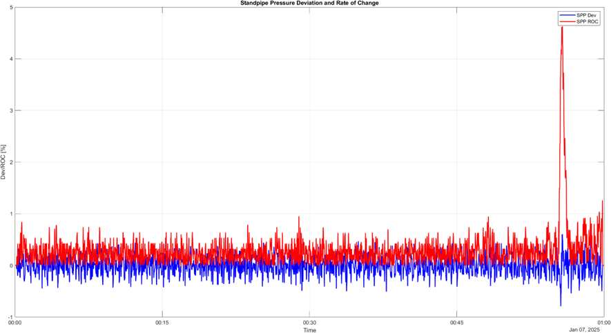 Rate of Change (ROC) обнаруживает потенциальные проблемы, фиксируя резкие изменения ключевых параметров без необходимости сравнения с ожидаемыми значениям. Преимущество метода в том, что он решает проблему, когда отклонение от модели слишком мало для срабатывания аларма из-за усреднения или сглаживания данных, и позволяет выявлять ухудшающиеся условия в скважине, даже если отклонения от модели кажутся незначительными. Используется для быстрого выявления резких изменений, которые могут быть пропущены при анализе «план/факт», при этом направление изменения (положительное или отрицательное) зависит от типа активности на буровой и отслеживаемого параметра.