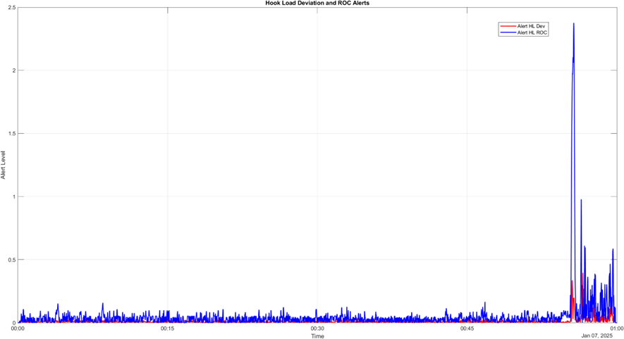 Для оценки риска прихвата использован анализ Alert Level по параметрам Hook Load, Standpipe Pressure и Torque.