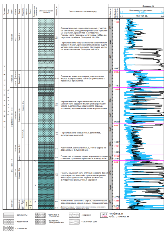 Рисунок 1. Стратиграфический разрез нижнекембрийского водоносного комплекса