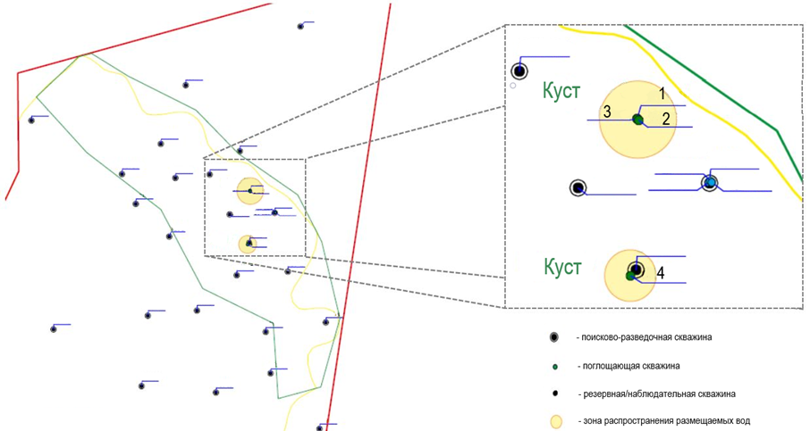Рисунок 2. Размещение попутных вод на месторождении Восточной Сибири