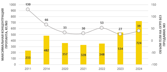 В 2025 г. рассматривается возможность применения кварцевого песка при проведении ГРП и применение ПАВ.