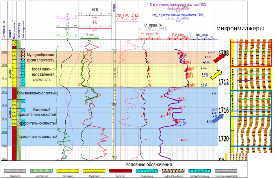 Таким образом, включение в комплекс ГИС методов высокого разрешения, в частности микроимиджеров и ядерно-магнитного каротажа, является критически важным для применения петрофизических уравнений с целью оценки фильтрационно-емкостных свойств, позволяя избегать ошибок при прогнозе продуктивности коллекторов.